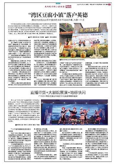 22日上午,“湾区豆腐小镇”落户英德市九龙镇峰林小镇,占地23亩的“湾区豆腐小镇”首期工程正式动工。首期建设包括“九龙豆食屋咖”“世界豆制品美食大观园”“中国大豆产业科技交易系统”等。二期工程拟依托广州国家现代农业产业科技创新中心、华南农业大学、华南理工大学建设“华南大豆科创中心”“大豆博物馆”“豆类功能食品研究院”等科研、科普平台。
