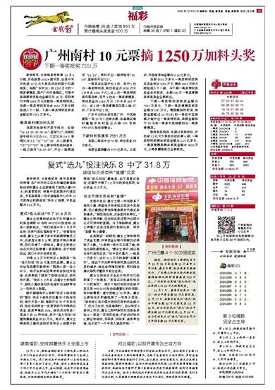 11月7日,番禺区彩民以“选九”玩法中得当期30万元固定奖;11月17日,海珠区彩民以“选九”玩法中得当期30万元固定奖;11月26日,白云区彩民以“选九”玩法中得当期30万元固定奖;11月29日,白云区彩民又以“选九”玩法合买方式中得当期30万元固定奖。