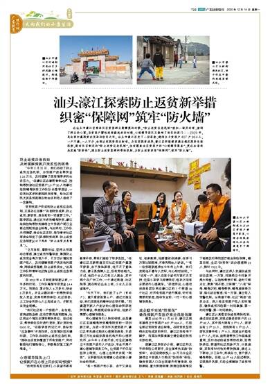 在汕头市濠江区青林社区贫困群众最需要的时候,“防止返贫应急机制”犹如一场及时雨,滋润了群众的心窝;当贫困户腰包逐渐鼓起来的时候,心理辅导团队又敲响了他们的家门……2020年,是全面打赢脱贫攻坚战的收官之年。汕头市濠江区交了一份答卷:建档立卡贫困户407户964人,一户不漏、一人不少,全部达到脱贫退出标准。为巩固脱贫成果,濠江区积极探索建立稳定脱贫长效机制,既有社区制定的“防止返贫应急机制”,也有覆盖全区贫困户的“心理辅导服务”,更在全省率先实施“防贫保”,建立防止返贫监测和帮扶机制,为防止返贫织密“保障网”、筑牢“防火墙”。