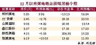 拉尼娜效应带来的冷冬预期落地,对用电量会产生明显的刺激作用。12月以来, 煤电概念成为市场热点,上周昊华能源、上海能源和郑州煤电等近10股涨停。昨日在三大股指跌幅均超1%的情况下,郑州煤电依然再度强势涨停,创三年以来新高。12月以来,郑州煤电的表现非常亮眼,涨幅已超50%。