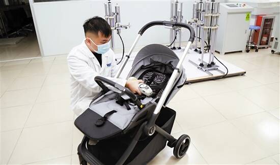 ■广州海关技术中心对儿童推车进行围栏开口测试。通讯员供图