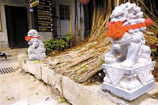 三官庙旧址东侧的大榕树下,78岁的权叔说起镇水石狮的来由就两眼放光: