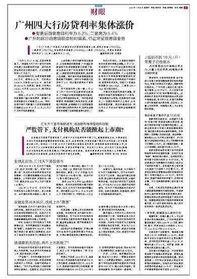 “今天(1月27日)起,买房利率更高了。”某国有大行广州一家支行的相关负责人告诉新快报记者,该行的房贷业务还在正常办理中,不过放款要排到3个月后了。