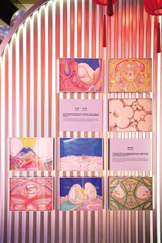 据介绍,此次“新潮游园记”中重点引用的作品——星球系列,由著名的新水墨艺术家林于思所作。本次展览的主展区M层中庭,一个外星人形象在他笔下闯入水墨世界探访地球,展开一场中国潮式拜年之旅。