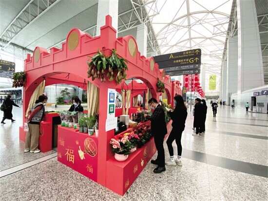 本次活动还将传统迎春花市和荔枝湾花船搬到了机场航站楼,配合着张灯结彩的装饰,以及“福星高照”“万事如意”“鹏程万里”“金玉满堂”等一个个饱含着吉祥寓意的店名,让广大出行旅客在候机时便能品味到广州浓郁的春节氛围。在广州工作多年的王女士表示,每年春节前都会提前回家,总是错过逛花街的机会,没想到这次可以在机场里圆了这个多年的心愿。
