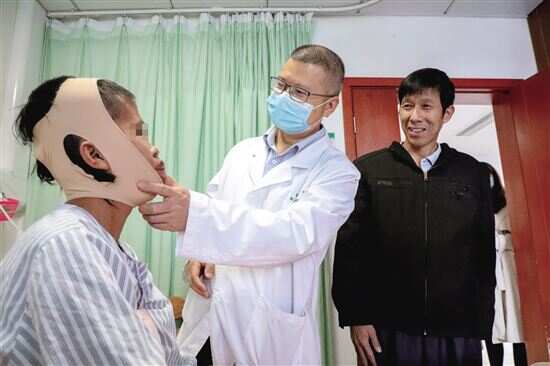 2020年12月17日,张金明主任给刘粮婷做了第一手术,主要是切除面部巨大的肿瘤,虽然难度极大,但有惊无险地完成了;12月22日,第二次手术,张主任给粮婷进行唇部手术;2021年1月14日,第三次手术,粮婷耳朵部分的治疗也完成了。“三次手术总的费用接近20万元,幸好有社会的捐助,再加上医保有一些报销,孩子得救了,真的太感谢了!”刘勇激动地说,他做梦也没想过粮婷真的有治好面部肿瘤的这一天。再次在医院见到粮婷时,她面部的巨大肿瘤已经不见了,虽然还有一些术后肿胀,但比起术前的模样,已经有了很大的改变。“特别高兴,今年可以开开心心回家过年了。”虽然纱布包着脸,粮婷也掩饰不住嘴角的笑意。