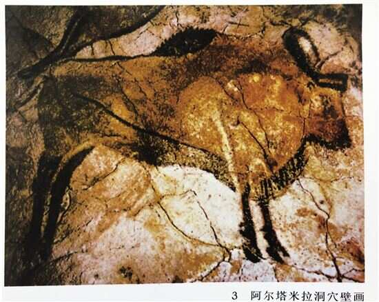 在欧洲,画在洞穴深处岩壁上的动物形象最杰出的范例中,不乏野牛的形象。壁画上的一些野牛形象十分高大,作者用细腻的笔法运用赭石、红、黄、黑等有限的颜色染画出不同色彩的鬃毛,又巧妙利用岩洞内凹凸不平的墙壁表现动物的形态,产生强烈的震撼效果。