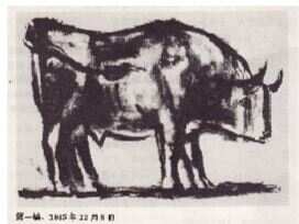 西方绘画中牛的形象越来越抽象,甚至看上去似乎回到了原始时代,比如野兽派著名画家马蒂斯晚年的作品就是这样。马蒂斯的牛体现出对笔触的欣赏,画作使用了看似稚嫩的手法,这样是为了防止使用经验老到的笔触而削弱表现力,有研究认为,马蒂斯的牛,体现出现代西方艺术对东方艺术的推崇,可以看到线条极其简练的,带有平面装饰性的艺术。