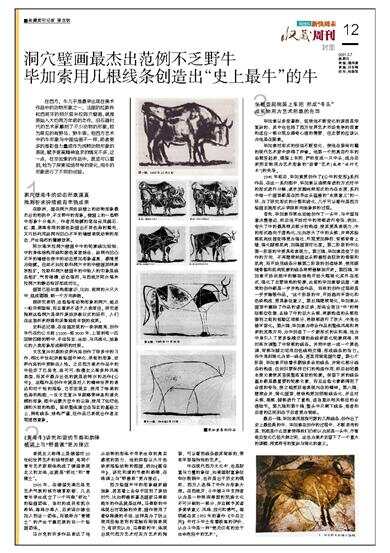 史料还记载,在法国发现的一块驯鹿角,创作年代在约公元前11000-前9000年,上面刻有一匹回眸四顾的野牛,手法写实、生动,与风格化、抽象化的人类形象形成鲜明的对照。