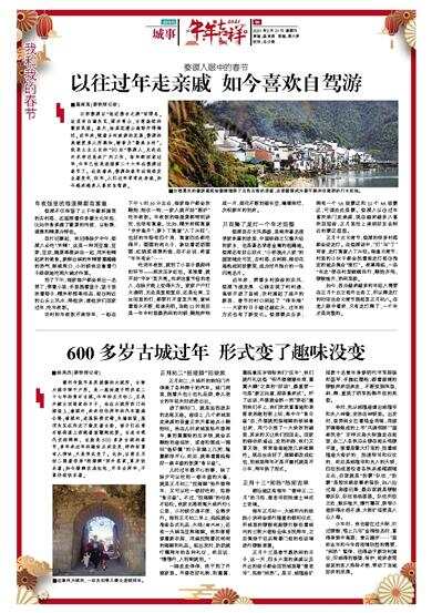 潮州市饶平县所城镇的大城所,古称大城守御千户所,是一座始建于明洪武二十七年的青石古城。今年的正月初二,正是外嫁女回娘家的日子,站在大城所西门的城垣上,看城外,来来往往拜年的汽车塞满公路;看城内,老屋纵横交错,灰墙斑驳,屋顶灰瓦在阳光下散发着古韵,孩子们在青石板街道上奔跑着放鞭炮玩耍。古老与现代交相辉映,这就是600多岁古城的春节,多年来过年的趣味从来没变:祥和而富有人情味,只是形式变了。比如,以前正月初二跟着母亲“担猪脚”回外婆家,累并快乐着;如今猪脚改成红包,开车去拜年,不累仍然快乐着。