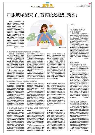 记者咨询生物医学专业人士,了解到对口服玻尿酸有效性的研究早已有之。公开资料显示,日本丘比公司和日本东邦大学联合进行了为期12周的双盲安慰剂对照实验,透明质酸组的全沟体积比、皱纹面积比和皱纹体积比均低于安慰剂组,从而证实食用玻尿酸的有效性。欧洲的A&G实验室研究结果显示,口服玻尿酸可增加皮肤弹性,试验者持续服用6个月之后,皮肤总弹性上升7%。