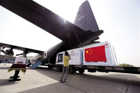 ■3月17日,中国政府援助巴基斯坦第二批新冠疫苗交接仪式在巴首都伊斯兰堡附近的努尔汗空军基地举行。 新华社发