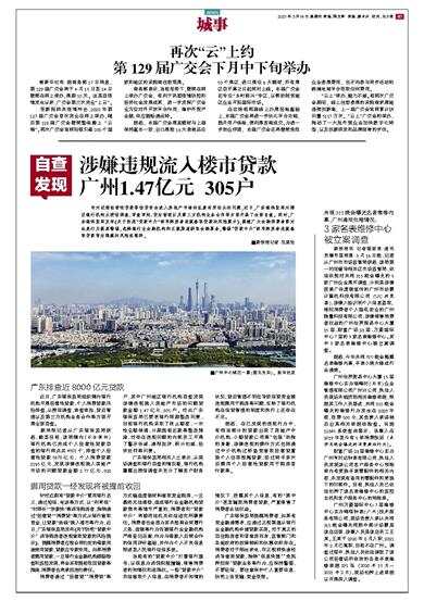 新快报记者从广东银保监局获悉,截至目前,该局辖内(不含深圳)银行机构已完成个人经营性贷款自查的银行网点共4501个,排查个人经营性贷款5678亿元、个人消费贷款2165亿元,发现涉嫌违规流入房地产市场的问题贷款金额2.77亿元、920户,其中广州地区银行机构自查发现涉嫌违规流入房地产市场的问题贷款金额1.47亿元、305户。对此广东银保监局已要求银行限期整改问责,目前银行机构采取了终止额度、一次性全额结清、分期提前还款等整改措施,对存在违规问题的内部员工开展了警示告诫、通报批评、积分扣减、经济处罚等问责。