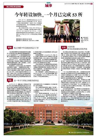 近日,新快报记者梳理发现,从2020年1月19日到2021年2月8日,教育部先后批复同意了67所独立学院完成转设。其中,仅2021年1月8日到2月8日一个月时间,教育部就批复同意了53所独立学院成功转设。可见,2021年独立学院转设再次按下“快进键”。