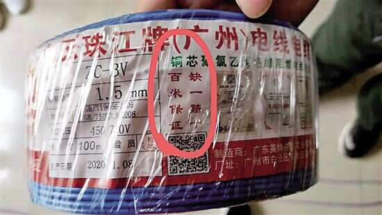 李先生是广州一家消防工程公司的负责人,去年6月起,该公司陆续向同城一家经销商采购“白云珠江牌”电线电缆,用于其承接的大型公共工程。“这个品牌是经销商推荐的,我们是第一次购买,但大家已经合作好几年,线一回来就直接分派到各个项目使用了。” 李先生说,半年多的时间里,公司共买了近15万米的电线,金额约55万元。