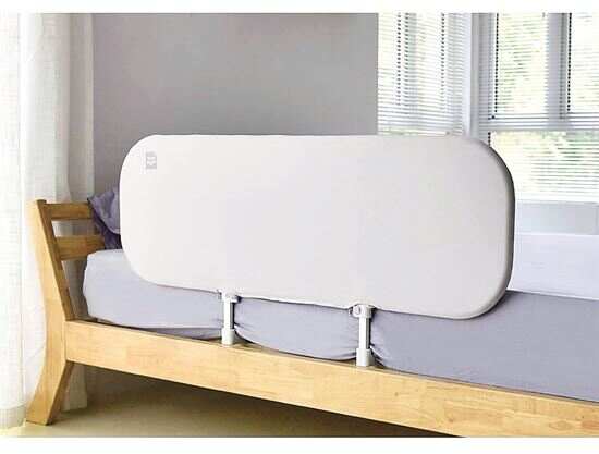 免安装、可折叠的便携式床护栏,可防止宝宝滚下床,在家里也可以使用。