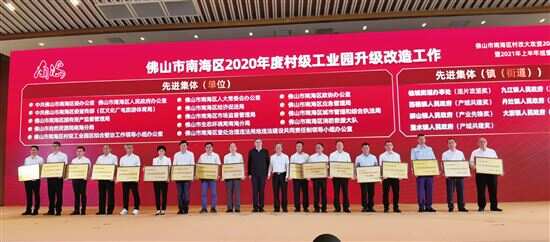 会上,南海区委副书记、区长顾耀辉部署村改大攻坚下阶段工作,并与《佛山市南海区村级工业园升级改造攻坚战三年行动计划(2021-2023年)》各主要责任单位签订责任书。同时,南海区表彰了一批村改攻坚先进集体和先进个人,表彰了40个先进集体、60位先进个人和向10个优秀项目授予荣誉牌匾。“2019年,南海获批建设广东省城乡融合发展改革创新试验区,在省、市领导的支持下,全区上下凝心聚力、聚焦攻坚,按照‘一个提升、两个连片’的总体思路,全面推进村级工业园升级改造,取得了积极的成效,并锻造了一支担当作为、敢打硬仗、能打胜仗的村改队伍。”顾耀辉说。
