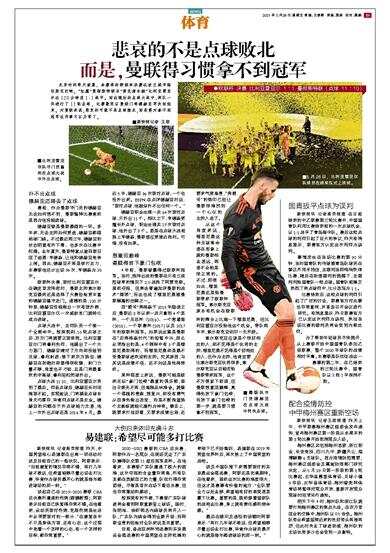 北京时间昨天凌晨,本赛季的欧联杯决赛在波兰城市格但斯克打响。“红魔”曼彻斯特联与“黄色潜水艇”比利亚雷亚尔在120分钟里1∶1战平。而在随后的点球大战中,两队一共进行了11轮点球,比赛最终以曼联门将德赫亚罚失而结束。对曼联来说,悲哀的可能不是点球败北,而是要对拿不到冠军这件事习以为常了。
