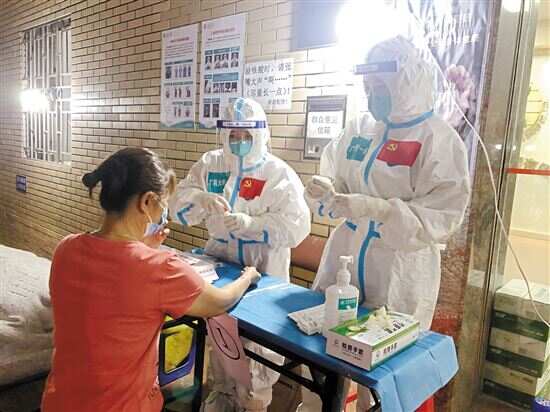 ▲冯素云在登峰街云泉社区做核酸检测工作。