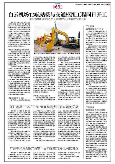 新快报讯 记者李佳文 实习生苏昉 通讯员粤机宣 穗建 陈子昕 鲁怀琦报道 6月26日,广州白云国际机场T3航站楼工程和白云机场T3轨道交通枢纽工程同日开工,这是白云机场三期扩建自去年9月27日开工以来所取得的又一个重大突破。T3航站楼引入“两高铁、两城际”——广河高铁、广中珠澳高铁、地铁22号线北延段(芳村至白云机场城际)及穗莞深城际,结合T1、T2航站楼现有地铁3号线北延线,将实现从白云机场20分钟内可达广州火车站或广州白云站(棠溪站),30分钟内通过高快速路可达老城区和天河中心区。