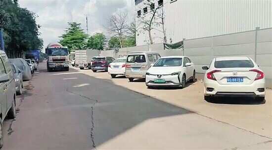 7月11日,新快报记者来到广州碧桂园小区外的水厂路,路面有些凹凸不平,有的地方出现了裂纹,不时有泥头车经过,东边紧挨着广州碧桂园小区。