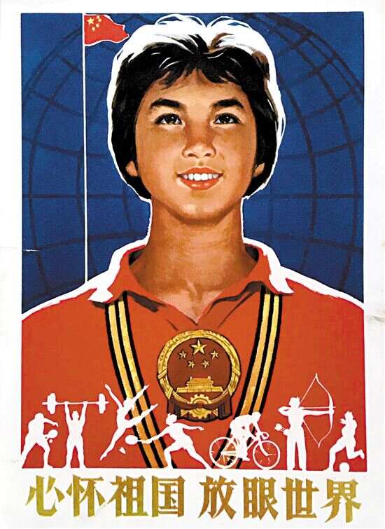 1961年,世乒赛首次在中国举行,容国团与队友共同摘得男子团体赛世界冠军,这一阶段涌现出一批表现乒乓健儿精神面貌的美术作品,例如刘秉礼创作的宣传画《心怀祖国,放眼世界》。