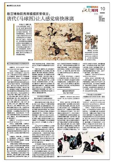 甲骨金文,秦篆汉隶,汉字中很早就有“体育”二字,但“体育”题材和带有娱乐竞技性质的运动项目在中国古代美术里,并没有特意被提出,美术史也只能从诗般劳作的文字注述和图绘录记中去循迹,更无专门画这一类的画家。故宫博物院首席模搨官常保立接受收藏周刊记者专访,他围绕古代艺术中的体育运动题材进行了深入的梳理剖析,他表示,竞技运动在古代美术未被重视,唐代《马球图》让人感觉痛快淋漓。