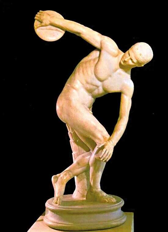 运动员雕像最负盛名之作《掷铁饼者》,雅典雕刻家米隆作品。已发现了多种复制品,我们至少也可以有个一般的印象,知道它是什么样子。