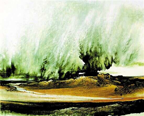 朱颂民结合传统笔墨与现代技法,以酣畅淋漓的笔墨和明快的色彩撰写出西藏山水的苍凉深厚与澄明幽深。他笔下的体育题材作品无疑是独特的,充分发挥了体育题材“运动”的特点,又把高原磅礴的气势跃然纸上。他的笔墨得益于岭南文化的熏陶,使其以西藏山水为创作主题的作品温润雄奇,壮阔秀丽,这也有别于人们印象中西部山水的干燥严寒和艰难险峻。