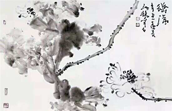 2×2的另两位陈开宇、黄汝鸿则对墨色特别敏感,开宇逸笔草草,取黄宾虹大师笔意,多年的沉淀使他的用笔与墨色更加浑厚华滋,深具东方山水之精神,近水远山奇状,云淡风轻清旷;少壮派黄汝鸿得益于在大学教授设计的特长,在水墨画作中融汇点、线、面设计元素,积水、破墨、晕染间,《云幽清秀》《碧珠》《素香》,尽表色墨氤氲。(潘玮倩)