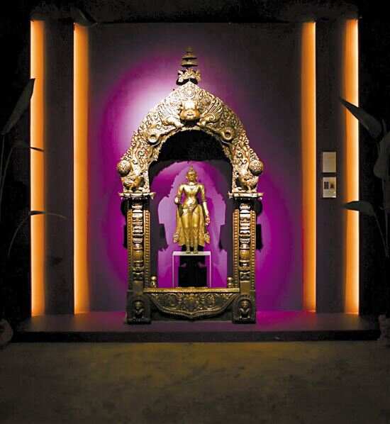 ■铜鎏金弥勒立像及迦楼罗佛门柱(十六/十七世纪)以845