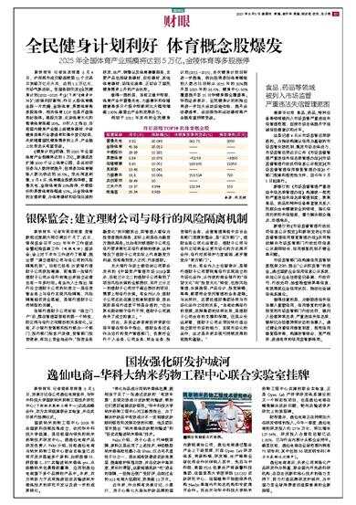 相较于2011年发布的全民健身计划(2011-2015),本次健身计划目标进一步提高,例如经常参加体育锻炼的人数占比目标从2015年的32%提升至2025年的38.5%,健身中心50%覆盖提升至15分钟健身圈全覆盖等。华西证券表示,全民健身计划的推出将进一步加大运动场地供给、提升运动渗透率,运动服饰和运动器材等产业链有望持续受益。