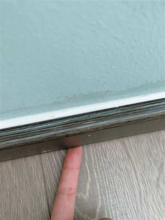 ■踢脚线和地板之间的缝隙能塞入小半个手指头。 新快报见习记者 庄嘉宝/摄