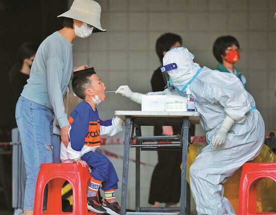 ■医护人员为小朋友做核酸。新快报记者 李小萌/摄