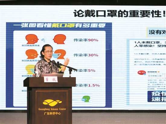 “面对全球新型冠状病毒肺炎疫情形势及我国本轮疫情特点,疫情防控离不开每个人的坚守,大家要主动接种疫苗,养成良好卫生习惯,丰富预防知识储备。”广州市疾病预防控制中心副主任医师董航聚焦“规范科普场馆疫情防控”等问题,对冠状病毒、新型冠状病毒特点、变异毒株等知识做了科普。她强调,由于科普场馆的功能特性,人员流动性大,关键要从场馆环境、防控制度、疫情宣传等方面着手,阻断疫情传播,携手共抗疫情。