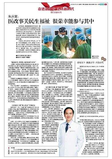 朱庆棠:希望大家身体更健康,少得病,少得重病。不仅要做高精尖、解决疑难重症,我体会更深的是要做医疗跟预防的融合。像之前,遇到很多从外地转诊过来的病人,病情往往已经很严重了,即使拼全力救治也不会恢复得太好,这时就会很心酸。所以,早发现,早治疗非常重要。比如我的专科领域,就是希望建立肢体创伤的医防融合体系,在基层受伤的第一线,就能够及时发现并送到具备救治能力的医院,预防漏诊和伤情加重,损伤修复和功能康复无缝衔接,减少伤残,减少后遗症。