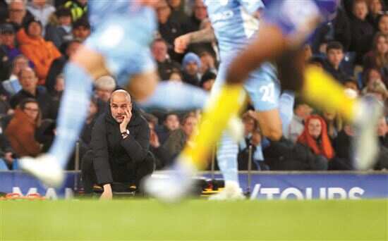 ■曼彻斯特城队主帅瓜迪奥拉在场边观察。 新华社发