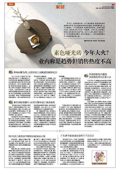 新中源陶瓷品牌相关负责人告诉记者,年轻消费者是素色哑光砖的主要受众群体,目前流行于一二线城市。由于跟亮面产品表面的工艺不同,素色产品生产难度要比亮面产品高。“纵观整个消费市场,瓷砖产品正在经历从‘性价比’到‘颜价比’再到‘心价比’的跃迁,品质和悦己成为新驱动力。每一款瓷砖的流行和火热,在一定程度上顺应了人们对家居空间的功能、感官和情感的需求。”