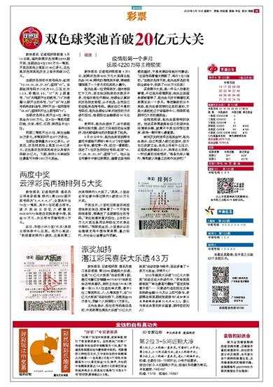 新快报讯 记者陆妍思报道 5月12日晚,福利彩票双色球第22053期开奖,当期送出4注1000万元一等奖,开奖后奖池上涨至20.46亿多元,这也是双色球奖池历史上首次突破20亿元。