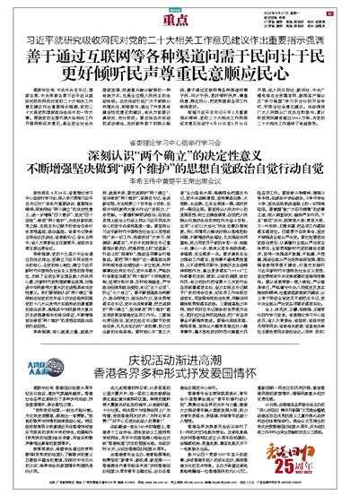 据新华社电 香港回归祖国25周年纪念日临近,喜庆气氛越来越浓。香港社会各界近期举办了多种庆祝活动,抒发爱国情怀,表达喜悦之情。
