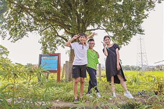 在八甲镇澄垌村田间地头,新快报记者发现了一棵体型巨大的古树猪血木,树下,竖着“国家一级重点保护植物”的牌子,几个小朋友玩得不亦乐乎。