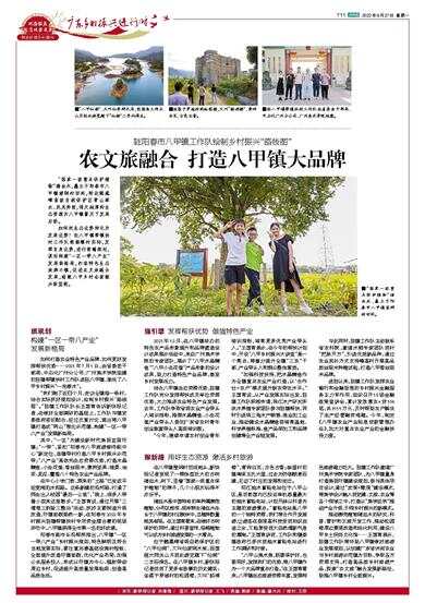 推动濒危植物猪血木的研究、科普、管护和文旅开发工作,推动松园楼周边景观改造和活化利用,建设八甲乡土民俗文化馆……王国育表示,驻镇工作队将协助八甲镇做好旅游业发展规划,以创建广东省休闲农业与乡村旅游示范镇为目标,争取各方资源支持,打造高品质乡村旅游产品,探索“农文旅”融合发展新路径,助推八甲镇乡村全面振兴。