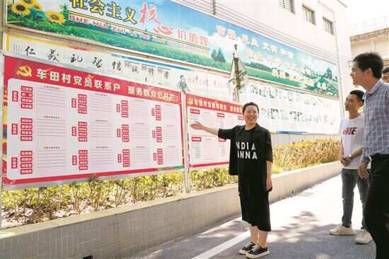 梁秋晓告诉新快报记者,过去的车田村发展落后、环境较差。如何打好一场翻身仗?村“两委”在基层治理上下足功夫,发挥党组织战斗堡垒作用和党员先锋模范作用。“我们村最大的特色是‘党员联村包户制’,一个党员包四户群众,起到传帮带的作用,帮助解决困难、创业致富、化解矛盾。”