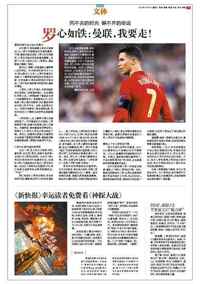 由于无故缺席了周一的首堂训练课,曼联上下都对C罗相当不满。为此,曼联也明确告知C罗,在周五赴泰国和澳大利亚的海外之行前,他必须归队。据英国《镜报》消息,曼联此次的态度十分强硬,已经向C罗发出了参加夏训的最后通牒。