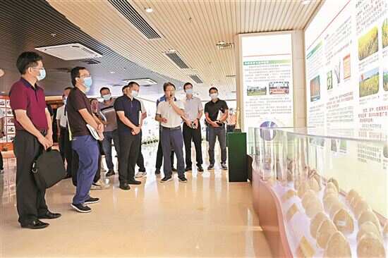 ■多位驻镇帮镇扶村工作队队长在展厅认真学习研究省农科院的农产品。