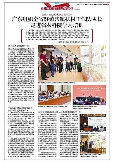 全面推进乡村振兴、加快农业农村现代化,科技支撑至关重要。7月8日,广东省乡村振兴局联合省农科院组织开展全省驻镇帮镇扶村工作队走进省农科院学习培训活动,着力加强科技支撑乡村产业振兴工作,提升驻镇帮镇扶村干部推进乡村振兴的能力水平。首批421名各驻镇帮镇扶村工作队队长参与培训。