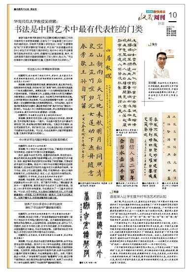 曾参与高中美术新课标《书法》《篆刻》模块的编写工作的华南师范大学教授吴晓懿,还参与了广东省美育三年行动计划的调研活动、华南师大附属小学校馆合一项目“非遗博物馆”和“汉字数字博物馆”的建设,并主持广东语委重点项目《中小学生汉字书写能力测评研究》,他对中小学生书法美育等方面有多年的深入研究,收藏周刊记者围绕美育、美术、书法教育等方面的问题跟吴晓懿作了深入探讨,他认为,“书法在美育中占据非常重要的位置,它是我们民族文化的核心。”