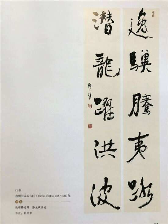 ■逸骥潜龙五言联 靳继君 释文:逸骥腾夷路 潜龙跃洪波