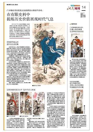 谈及创作思考时,张森霖介绍,当接到任务时,感到很惊讶,也很惊喜,更感到责任的重大。他认为,在没有真人图像作为参考、所掌握的资料又极其少的情况下,要创作好历史人物,关键是要把握好当时的历史背景、人物事迹,从有限的史料中进行提炼。“我在创作中着重三方面的考虑:一是以艺术的形式充分表现人物积极向上、充满正能量的一面;二是努力挖掘历史价值和展现时代气息;三是反复琢磨、不断修改,把人物的神韵勾画出来,使作品生动形象”。