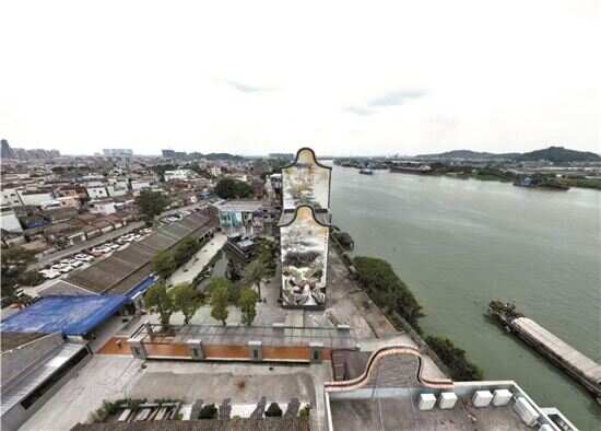 开幕式上最为震撼的莫过于一面以叶老师画作《古壁生辉》为原型,由专业墙画师历经3个月描绘而成的高达4层楼的墙绘,这幅巨型田园山水画展示了心安为家,竹影入瓦墙,清泉煮酒,闲话桑麻的闲适田园生活和山清水秀的优美环境,与一旁青碧的德胜河道相得益彰。